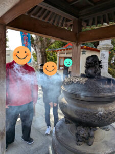 お参りの前に手水舎で手と口を浄め、香閣では煙で心のお浄めをします。