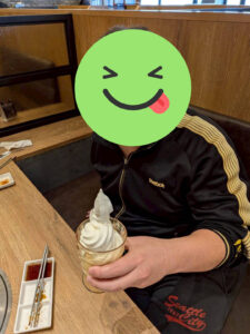 難しそうなソフトクリームの機械を上手く使いこなして、出来上がったのがこちら👇